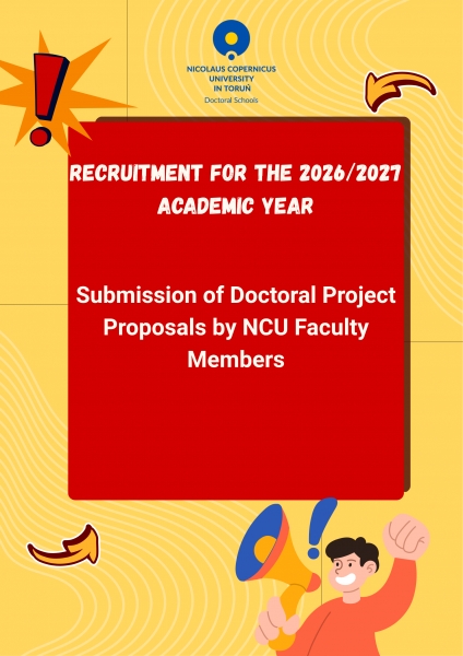 Submission of Doctoral Project Proposals by NCU Faculty Members starts on 14.04.2026 - for more information on how to submit a complete application follow the link.